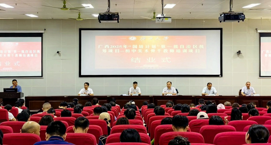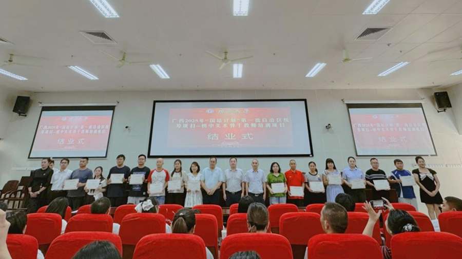 “国培计划”是落实《教育强国建设规划纲要(2024—2035年)》的重大实践。9月24日,由广西壮族自治区教师培训中心主办,广西大学承办的广西2025年“国培计划”第一批自治区统筹项目——初中美术骨干教师培训班在我校结业,爱体育官方网站副院长徐华出席结业式并讲话,爱体育官方网站梁君华老师主持结业式。